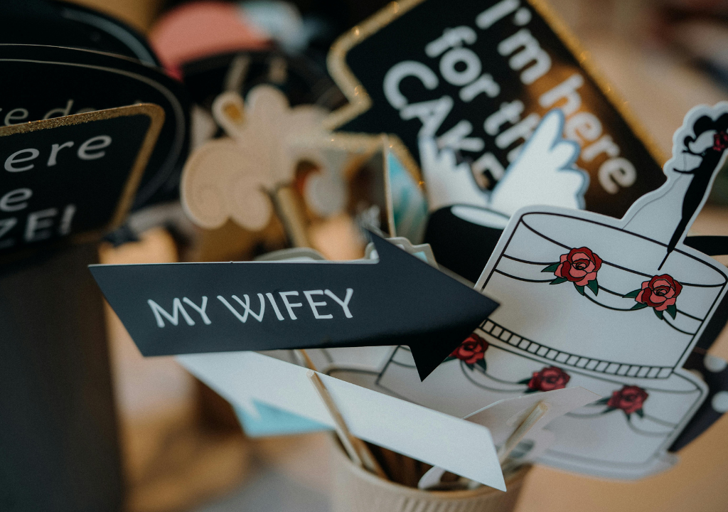 • Photo Booth Props: Create fun props like oversized hearts, mustaches, or custom signs for your guests to use.